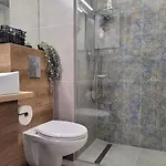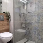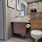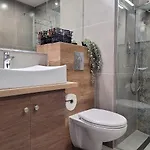 Q Apart Meta -1, 2 Lub 3-Pokojowe, Klimatyzowane Apartamenty Przy Manufakturze Z Garazem Lub Parkingiem Gratis, Fv has an adjoining terrace, a balcony, and a seating area, and comforts such as climate control. The apartment offers guests the convenient feature of a hair dryer, free toiletries, and bath sheets in the bathroom. A separate toilet and a shower can also be found.